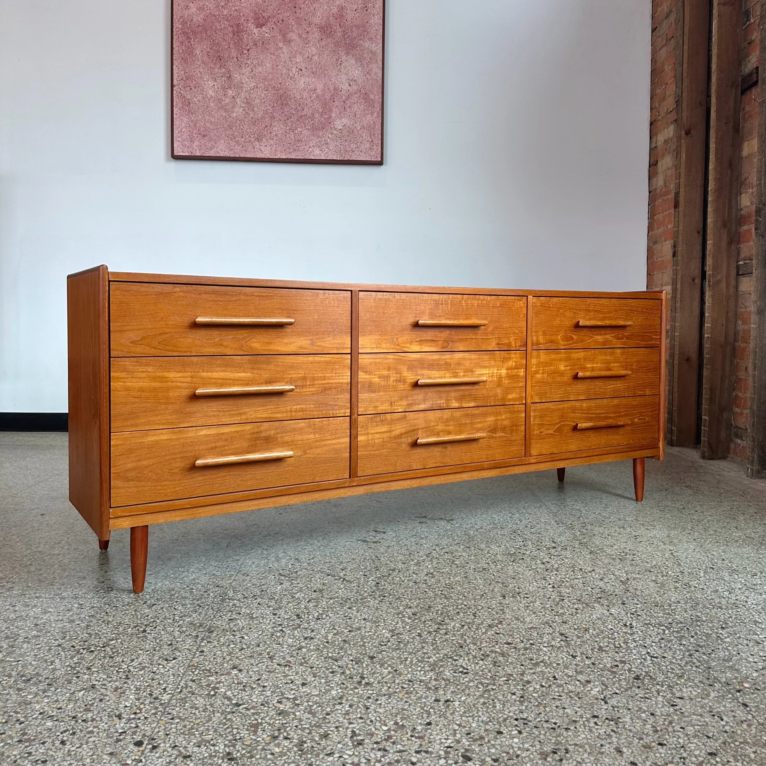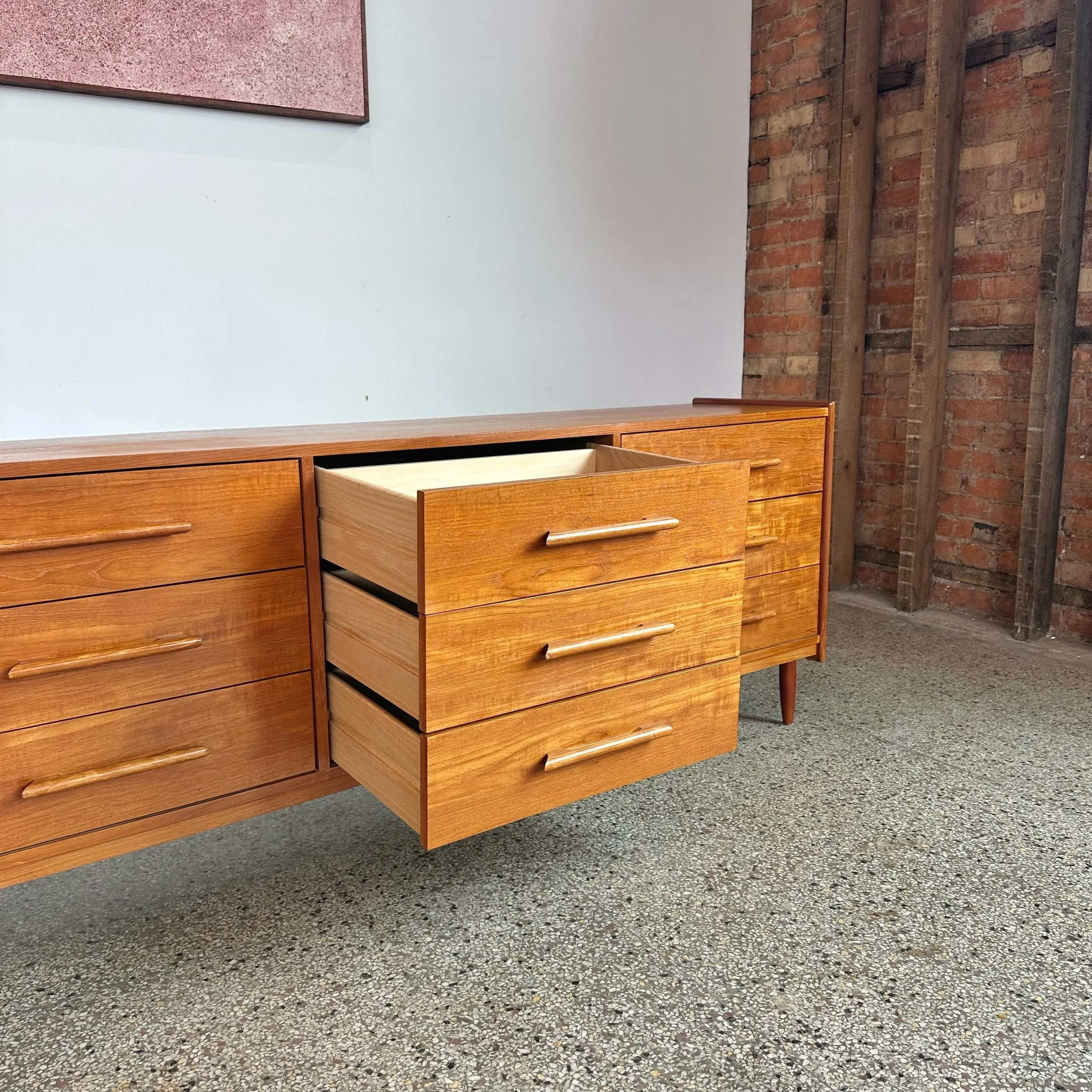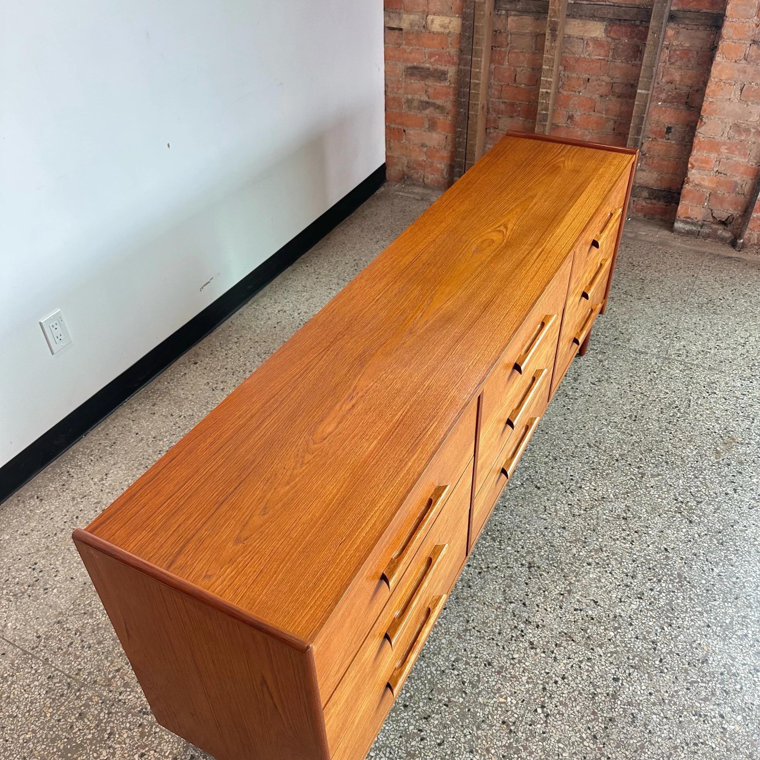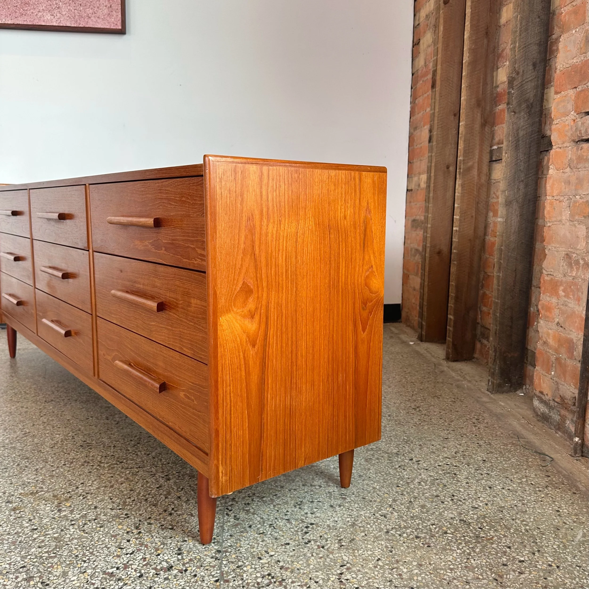 Teak Mid Century Modern Nine Drawer Dresser